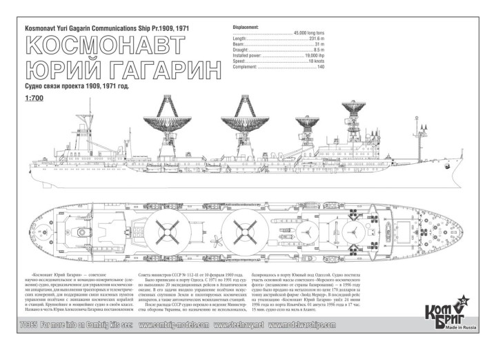 1971年,加加林号在列宁格勒的波罗的海造船坞建成下水,属于苏联“轨说念”级航天测量船,是其时大家建造的范围最大、期间来源进的航天测量船之一,其环节性仅次于陆基航天指点中心,号称苏联天外体系的“海上天眼”。